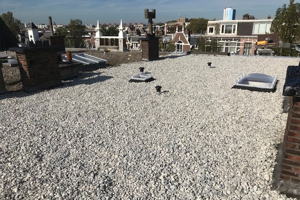 HBI Aannemers heeft bij een woning in Den Haag een plat dak compleet vervangen en voorzien van nieuwe lichtkoepels. Hierdoor is het dak weer 100% waterdicht en stroomt er meer licht de woning in. Om te zorgen dat het nieuwe dak er weer een flink aantal jaar tegenaan kan, werd de oude dakbedekking compleet verwijderd en herstelden we alle rotte delen en oneffenheden. Als toplaag kwam er nieuw grind en naast twee nieuwe lichtpunten werd er ook een nieuwe ontluchtingskap geplaatst.