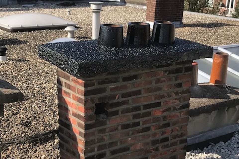 - Vernieuwen voegwerk platvol van schoorsteen.